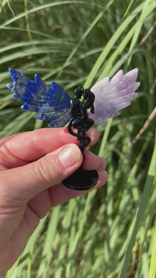 Lapis Lazuli and Lepidolite Devil and Woman Wing Set