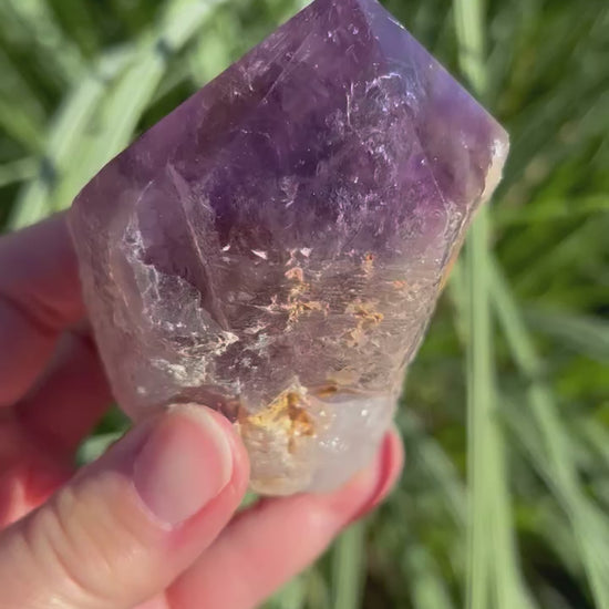 This stunning Amethyst root has the juiciest, rich purple color with gorgeous rainbows. This beauty comes with a stand. Every purchase comes with a gift!