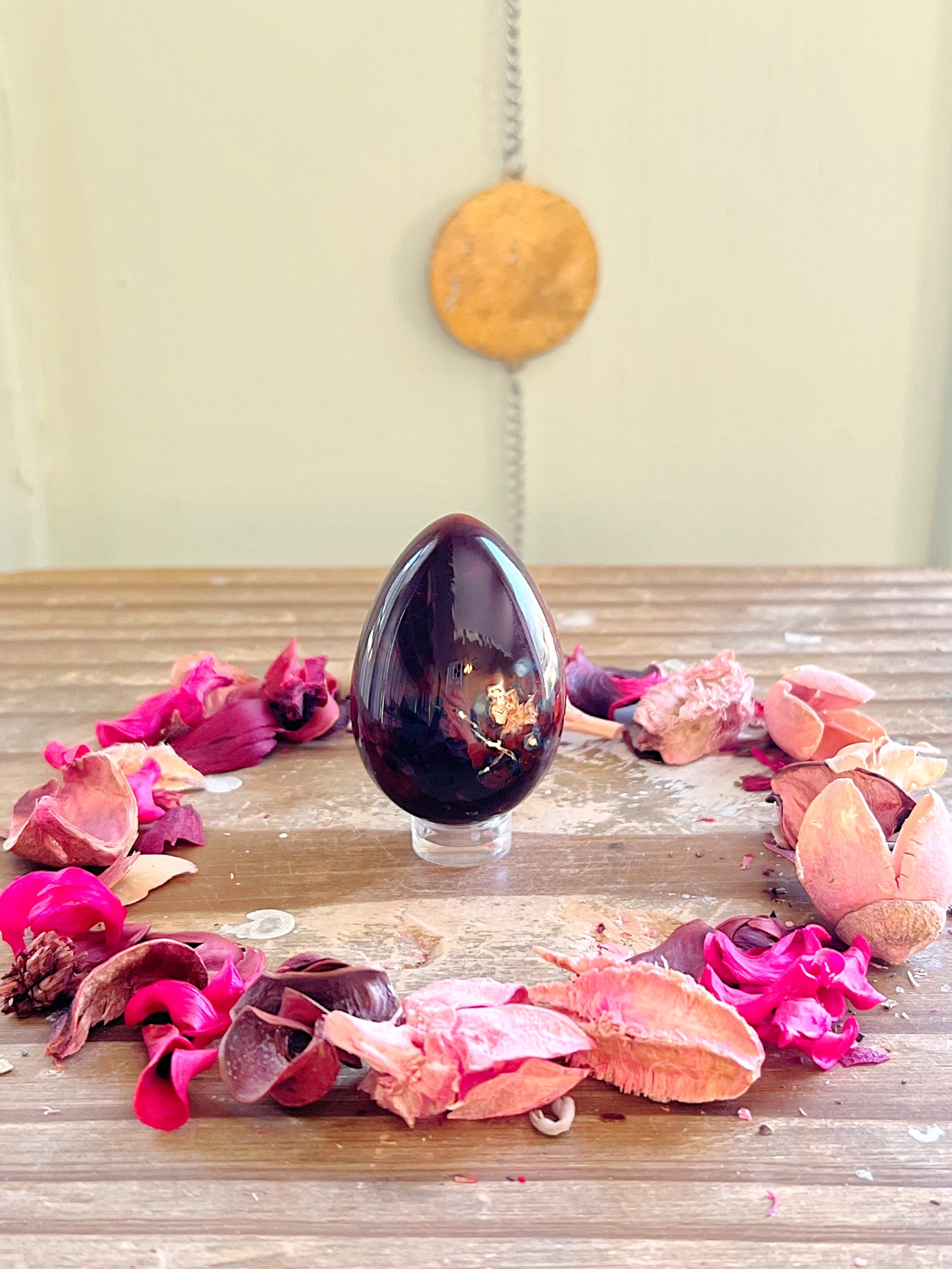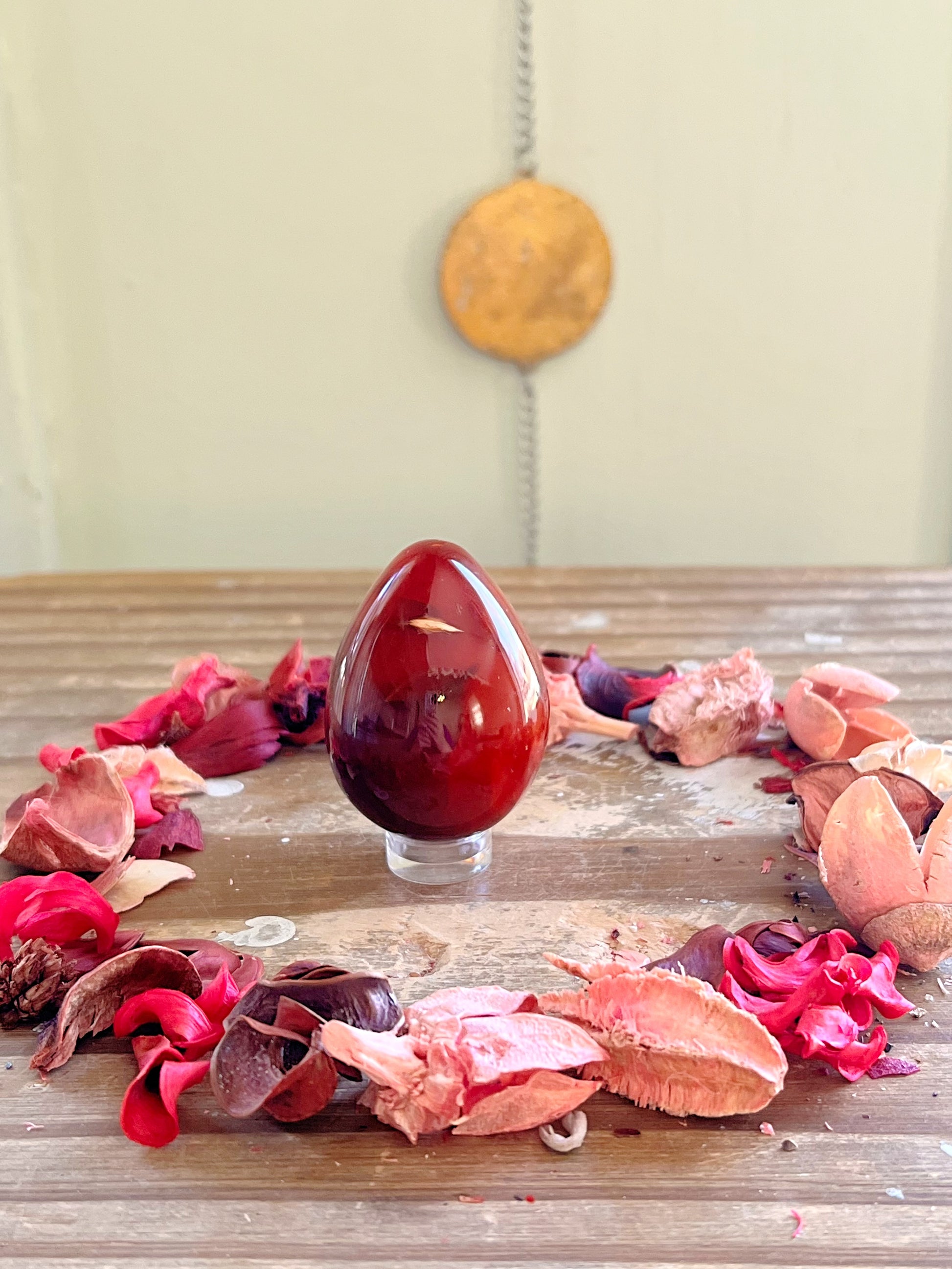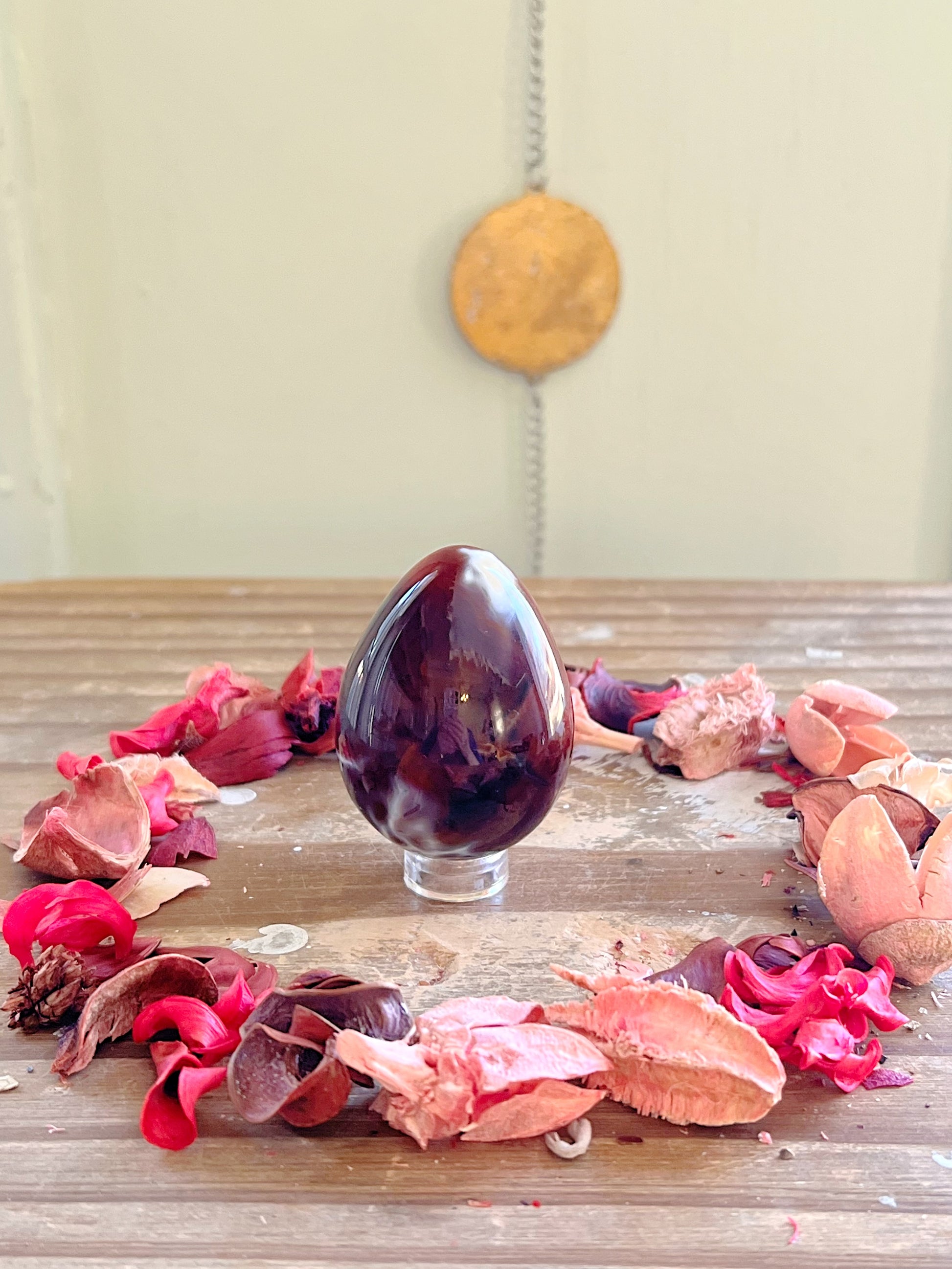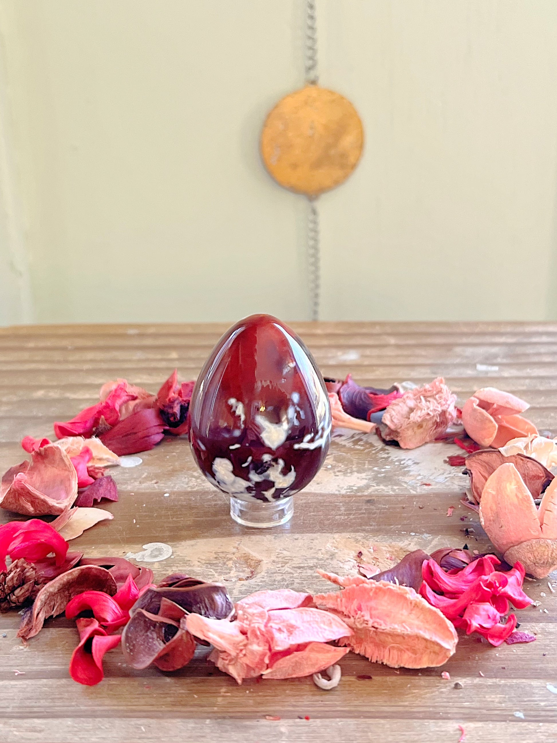 These gorgeous Carnelian eggs each have different shades of rich orange with unique patterns. Every purchase comes with a gift! Comes with an acrylic stand to display them on.