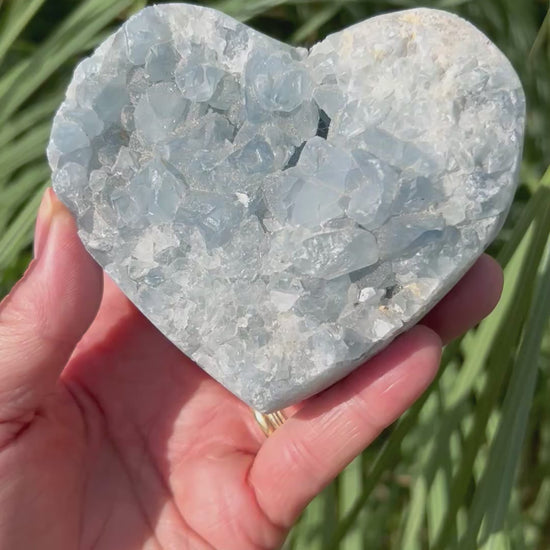 This incredible, right under 2 lb, Celestite heart on a stand has the most etheral blue color with gorgeous druzy. Every purchase comes with a gift!