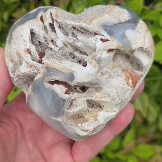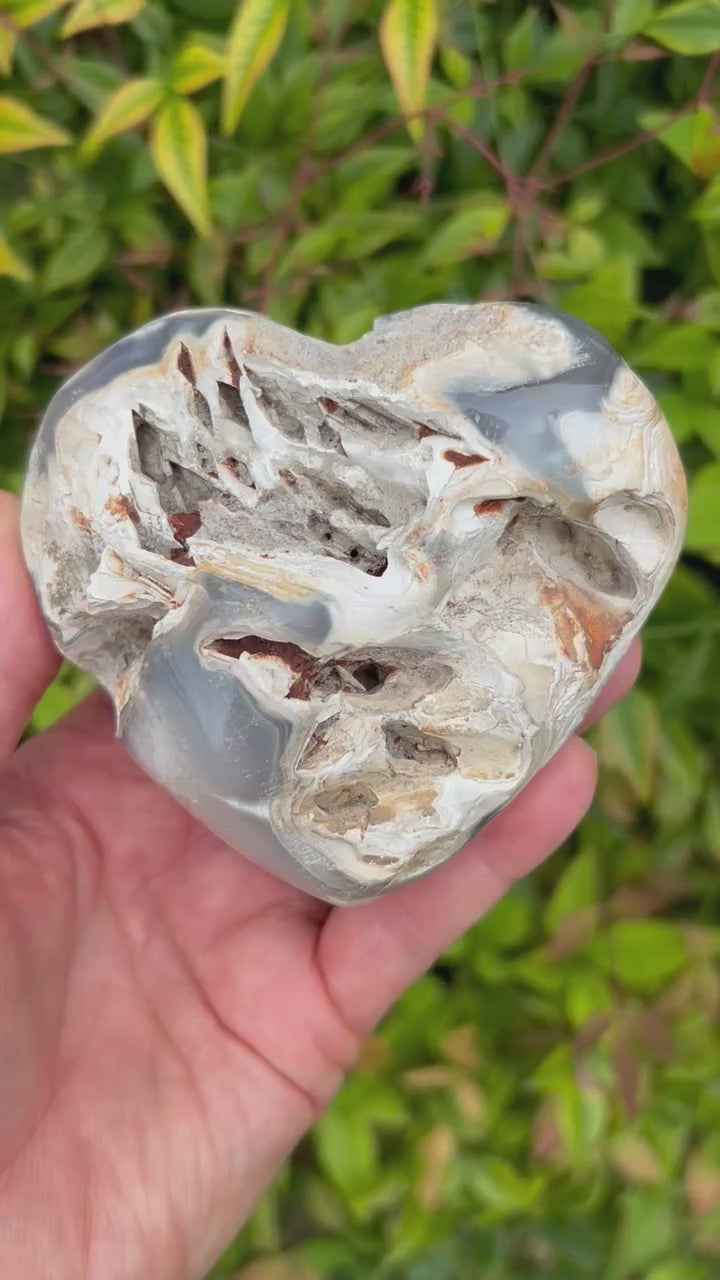 This absolutely incredible Orca Agate heart is over 1 lb and is so unique because of all the many caves and cutouts in it. It also features beautiful dark Agate and even sparkly druzy. Every purchase comes with a gift!