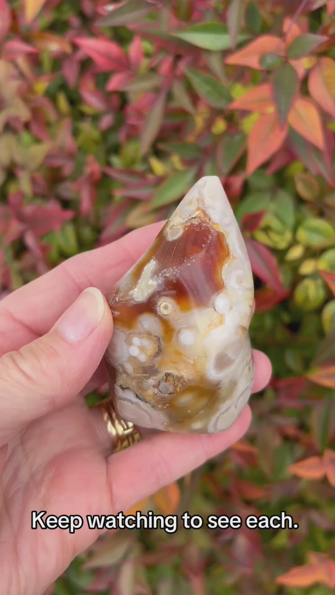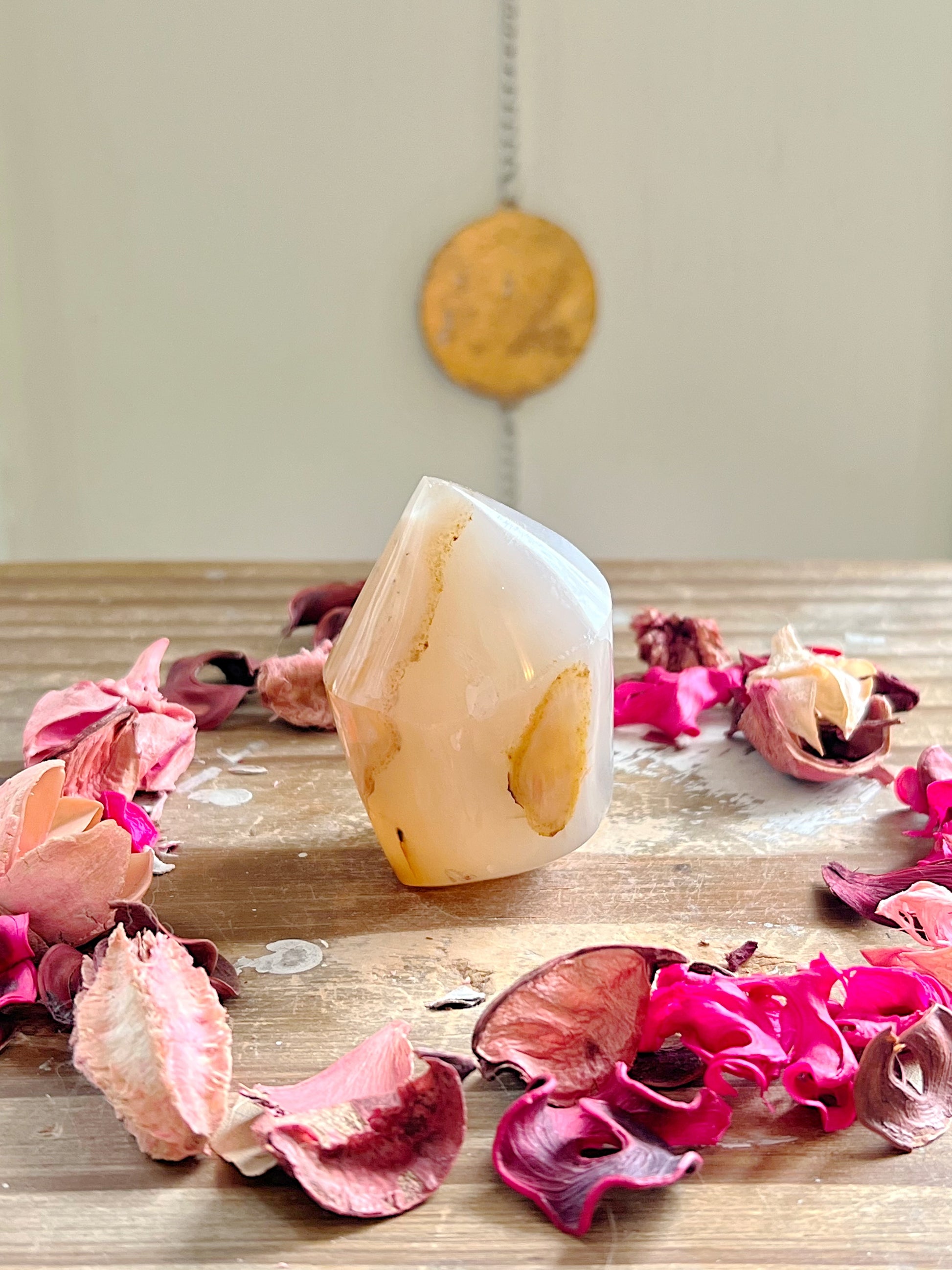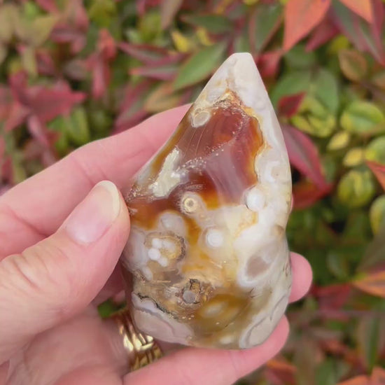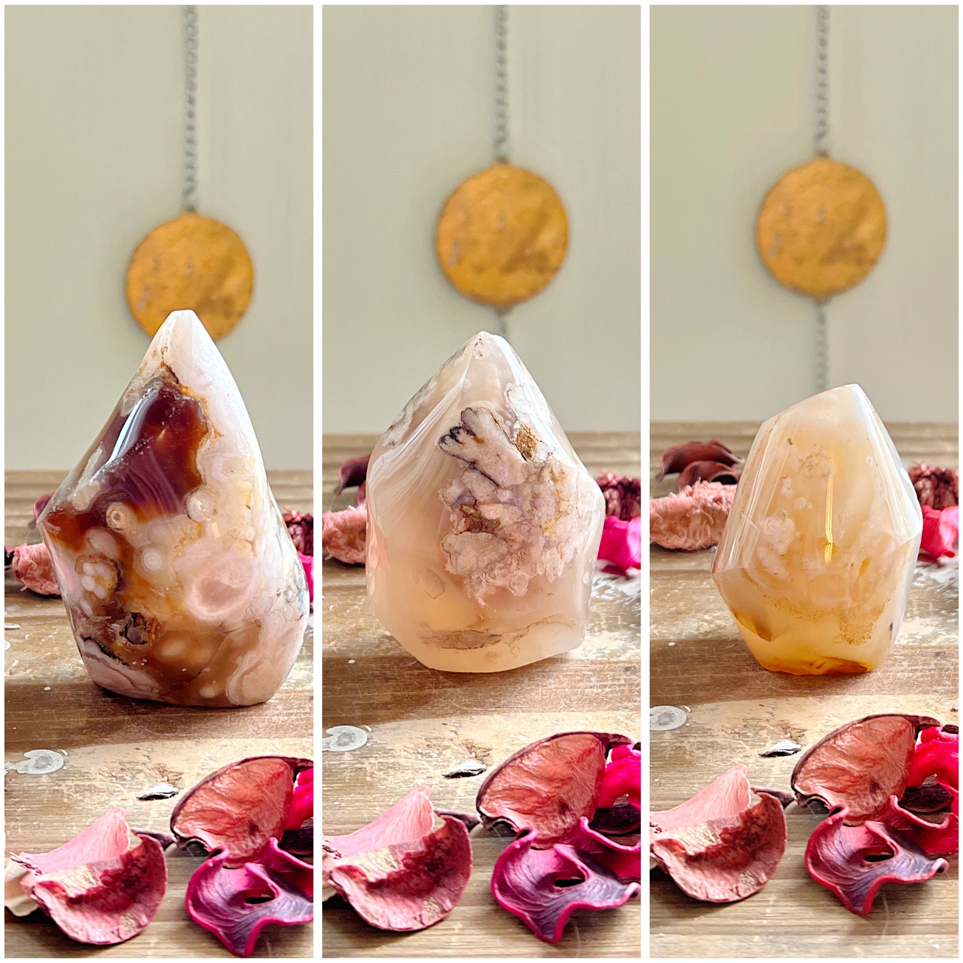 These precious Flower Agate flames each display different stunning colored Agate with the prettiest plumes. Every purchase comes with a gift!