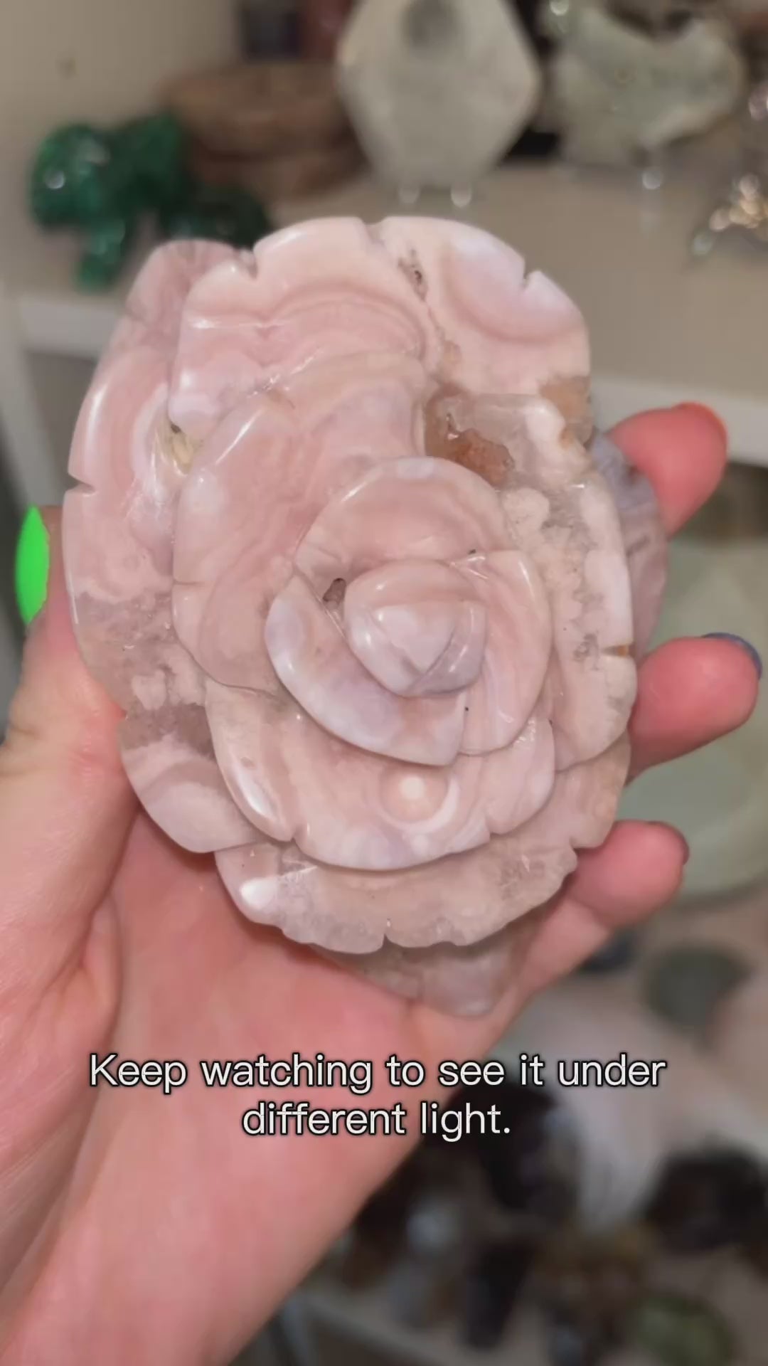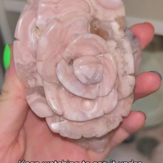 This gorgeous super intricate Flower Agate flower on a stand has the most beautiful colors and plumes with sparkly Quartz running throughout it. Every purchase comes with a gift!