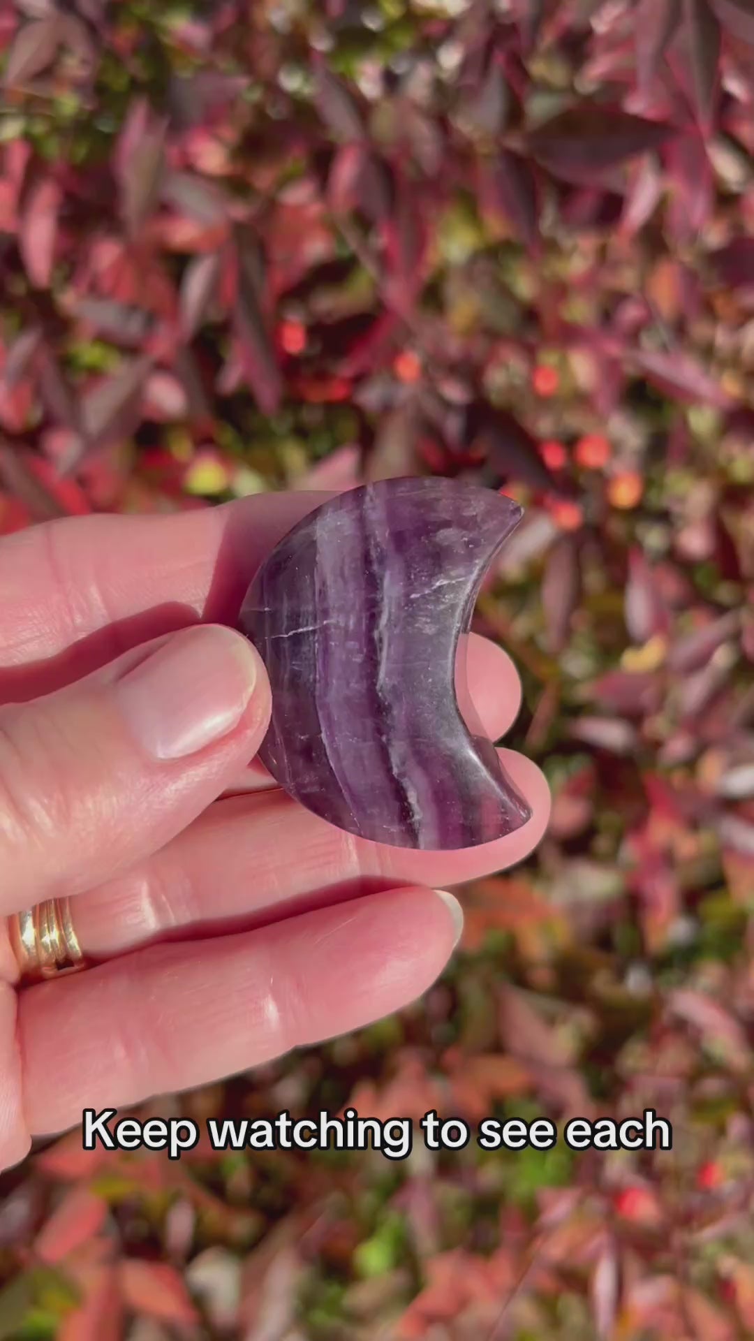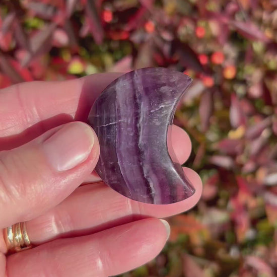 These precious Fluorite moon carvings each have stunning saturation and banding all with little flashes of rainbow. Every purchase comes with a gift!