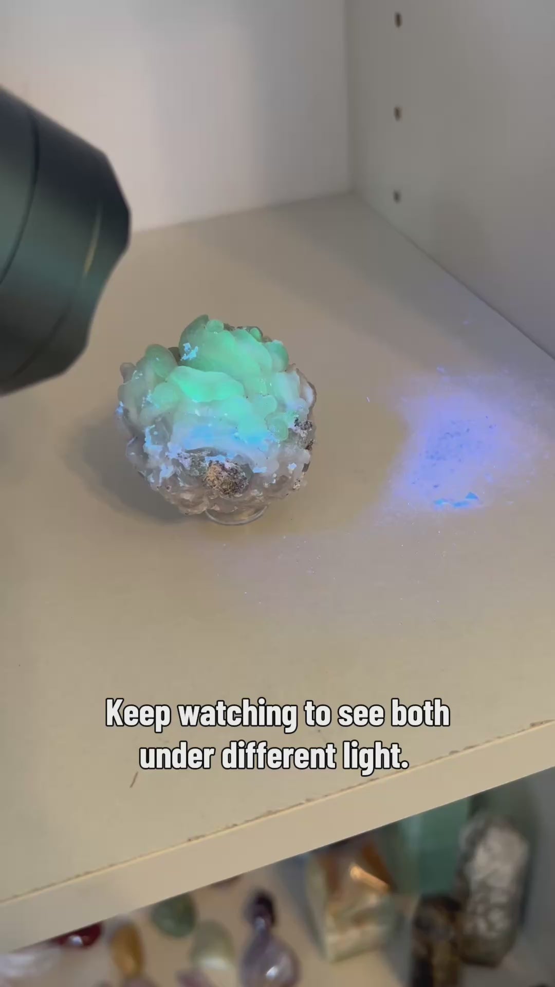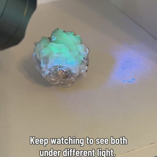 The coolest raw Mexican Agate spheres are now available. They have the most interesting design and texture. The coolest part is that they glow green under UV! Every purchase comes with a gift! Comes with a free acrylic stand.