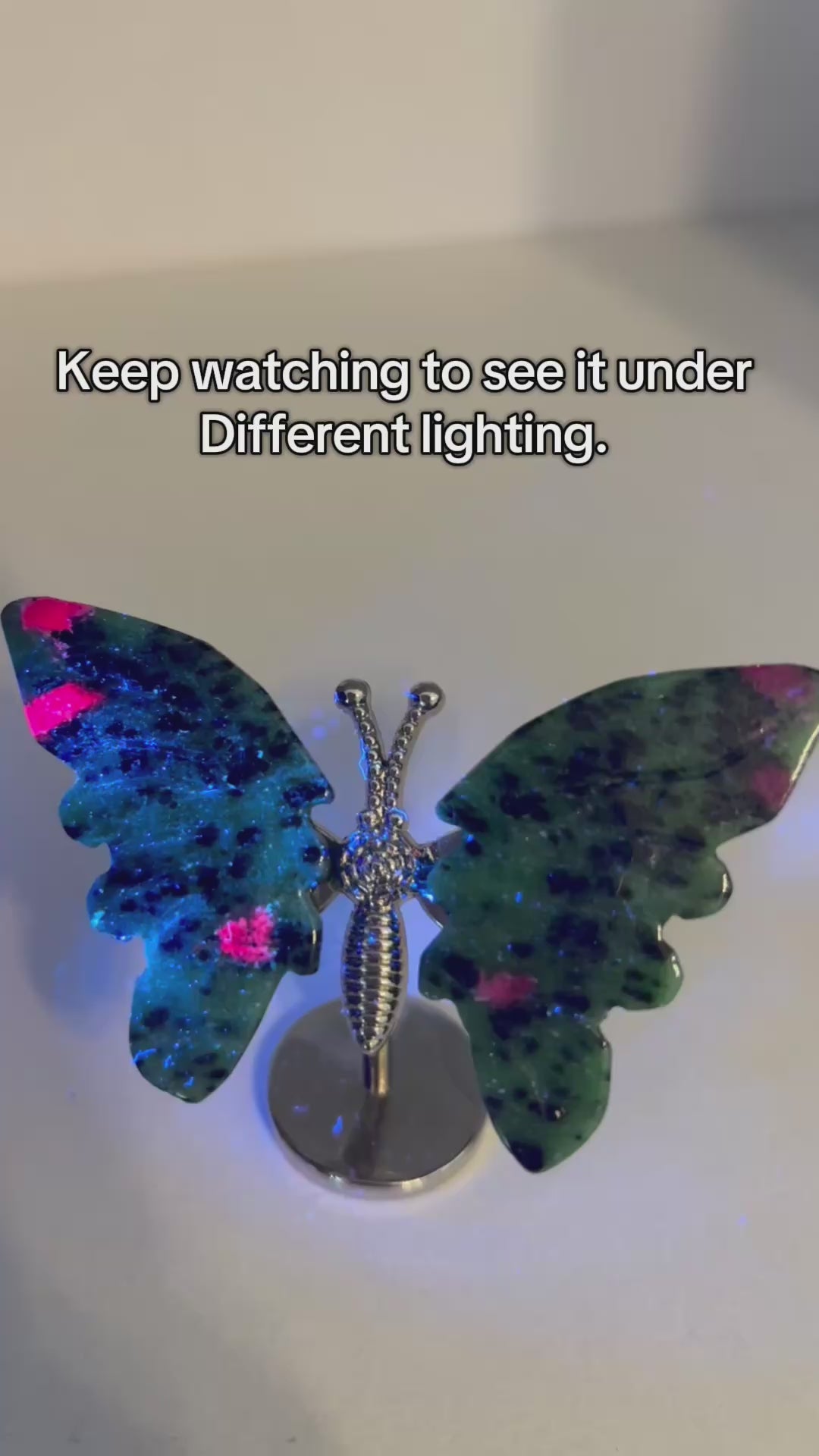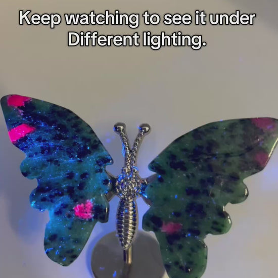 These beautiful Ruby Zoisite butterfly wings have the most fun colors and patterns. The coolest part is that the Ruby glows under UV light. Every purchase comes with a gift!