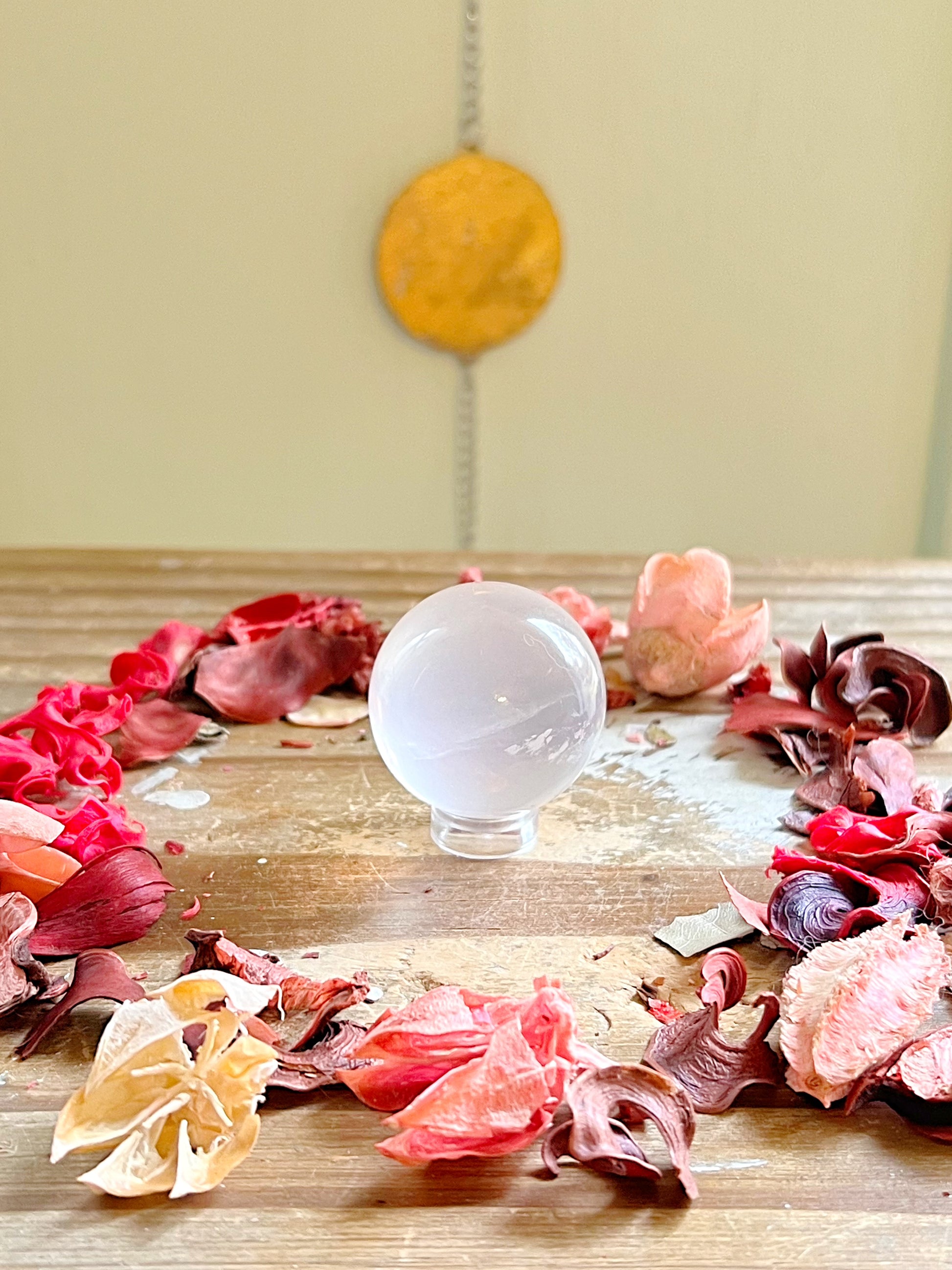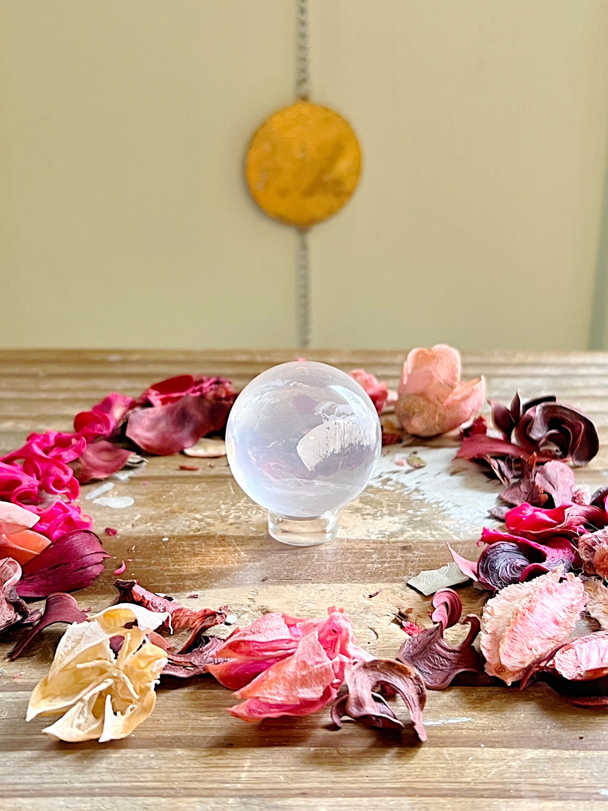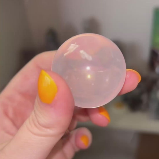 These incredible 12 Ray Star Girasol Quartz spheres have the most stunning, prominent stars that twinkle throughout the spheres. These special Quartz spheres have a really cool milky appearance. Every purchase comes with a gift! Comes with a free acrylic stand.