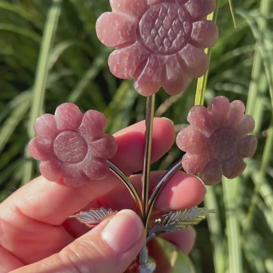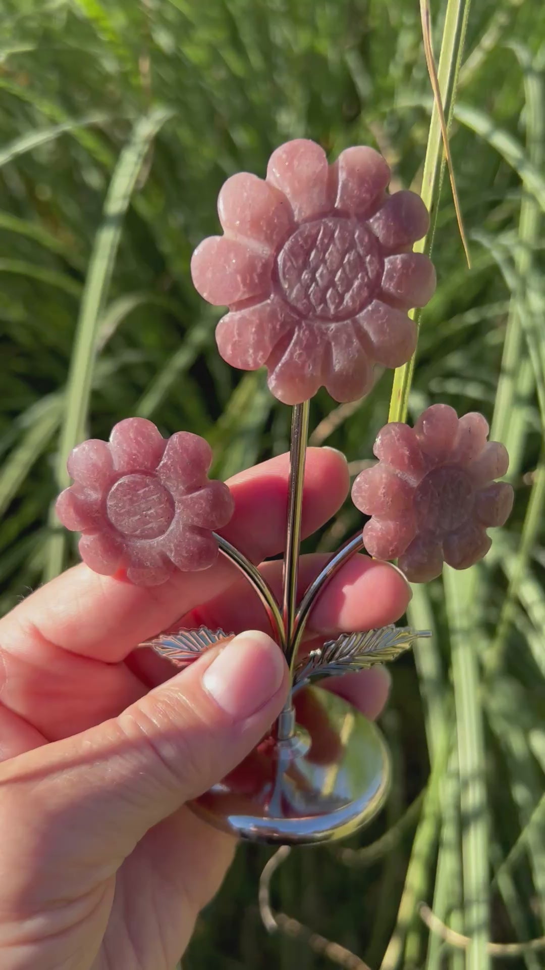 These gorgeous Strawberry Quartz flowers come on a beautiful silver stand. Every purchase comes with a gift!