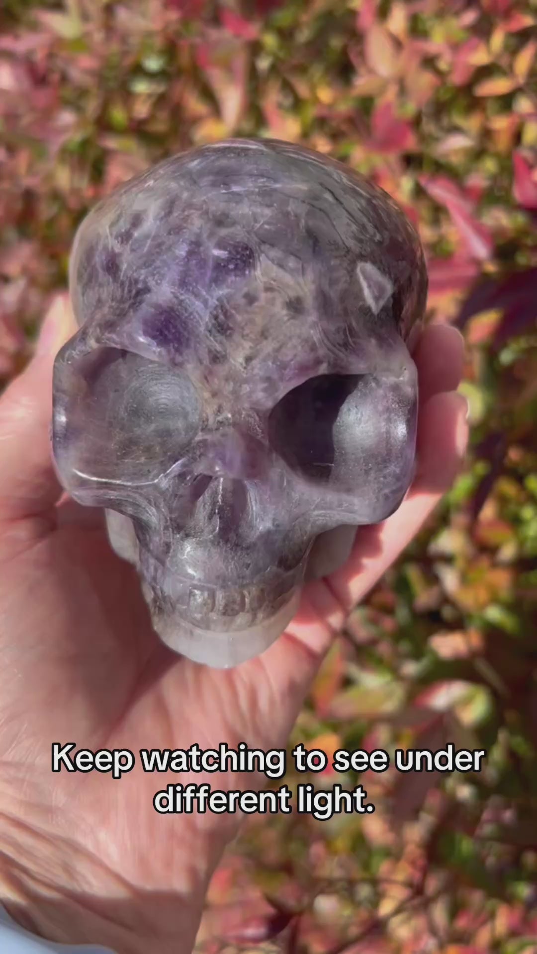 This precious, big 2 lb 5 oz Dream Amethyst skull carving is ready to be adopted! This beauty has such rich purple color with beautiful Dream Amethyst patterns and amazing detail within the carving. Every purchase comes with a gift!