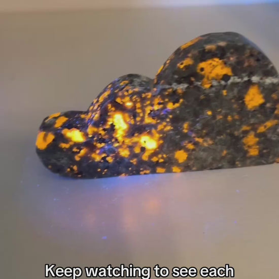 These stunning Yooperlite cloud carvings each have the coolest patterns that glow like lava under UV lighting. Every purchase comes with a gift!